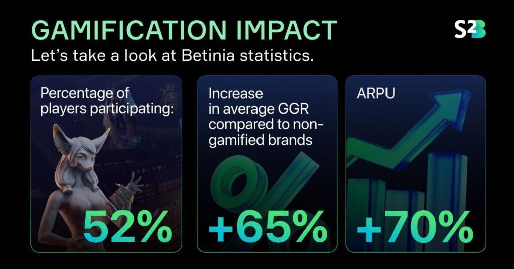 In the past 12 months, Betinia recorded a 65% increase in gross gaming revenues (GGR) when compared to non-gamified brands.